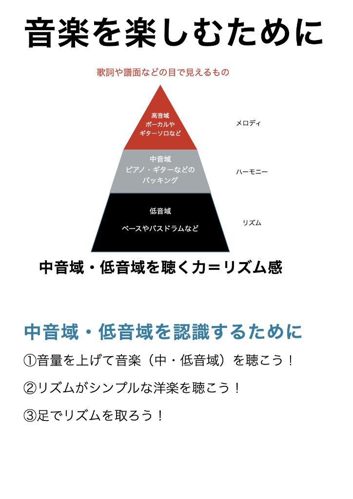 リズム感を良くする為には、中低音を聞き分けることが大事です。